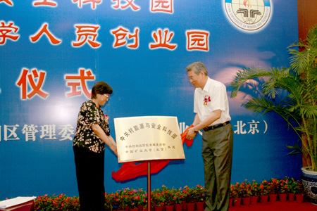 7?2日上??0?ldquo;中关村能源与安全科技?rdquo;?ldquo;中国矿业大学留学人员创业?rdquo;签字揭牌仪式在我校交流中心报告厅隆重举行。教育部副部长吴启迪,国家安全生产监督管理总局副局长梁嘉琨,中国煤炭工业协会党组书记、中国煤炭学会理事长、原煤炭工业部副部长濮洪九,国家煤矿安全监察局副局长王树鹤,中关村科技园区管理委员会党组书记、主任戴卫,国家煤矿安全监察局监察专员朱凤山,煤炭工业协会副秘书长朱瑜,中关村科技园区管理委员会副主任夏颖奇,中关村科技园区管理委员会机关党委书记蒋苏生,中关村科技园区管理委员会委员张茂盛,我校党政领导张保军、乔建永、安里千、杨仁树、孙继平、范迅,教育部、国家安全生产监督管理总局、国家煤矿安全监察局和中关村管委会有关部门负责人及我校师?00多人参加了签字揭牌仪式?/p> 签字揭牌仪式由副校长孙继平主持?/p> 党委书记张保军在仪式上致欢迎辞。他首先代表学校党委和行政以及全校万名师生员工,?ldquo;中关村能源与安全科技?rdquo;?ldquo;中国矿业大学留学人员创业?rdquo;的成立表示祝贺,向出席仪式的各位领导和嘉宾表示诚挚的谢意和热烈的欢迎。随后,张保军简单介绍了学校的教学、科研、学科建设、创新平台体系建设等方面基本情况。他指出,成?ldquo;中关村能源与安全科技?rdquo;?ldquo;中国矿业大学留学人员创业?rdquo;是我校发展史上的一件大事。学校将把科技园和创业园建设纳入学校整体建设与发展规划,严格按照国家大学科技园、北京高新技术园区及中关村科技园区的建设思路和要求,以国家能源建设、北京经济建设和社会发展需求为导向,不断强化科技园的研发、辐射和孵化功能,力争在三年内,将科技园和创业园建成具有能源与安全特色的、在国内有影响的科技园和留学人员创业园?/p> 张保军还就科技园和创业园的建设及发展规划进行了介绍。他说,科技园和创业园将坚持“科学规划,合理布局,统筹安排,协调发展”的原则,坚持科技园和创业园与学校事业协调发展;坚持科技园和创业园与首都经济、能源科技和煤炭工业技术协调发展;坚持开放,加强科技园和创业园的国内外合作与交流;进一步健全创新创业人才的培养和引进机制,从全世界的范围集聚人才及相关资源,增强发展潜力。学校将通过完善管理体制、运行机制和人才培养机制,构建高水平服务平台,营造良好的创业环境,促进园区的开放合作等具体措施,使科技园和创业园将在科技成果转化、培养和吸引高素质的科技型企业家、高层次技术人才和应用型人才等方面做出新贡献,使科技园和创业园成为能源与安全科技领域留学归国人员的创业乐园,成为大学生实践和创业的基地?/p> 中关村科技园区管理委员会副主任夏颖奇在仪式上介绍了中关村科技园区的基本情况。他指出,中关村科技园区起源?0世纪80年代初的“中关村电子一条街”?988年经国务院批准成为我国第一家高科技园区?999?月国务院正式批复,要把中关村科技园区建设成为推动科教兴国战略、实现两个根本转变的综合改革试验区;具有国际竞争力的国家科技创新示范基地;立足首都,面向全国的科技成果孵化和辐射基地、高素质创新人才培养基地。力争用10年左右的时间,把中关村科技园区建设成为世界一流的科技园区。近年来,中关村科技园区加快了与高等学校的合作,以清华科技园为代表的大学科技园,逐渐成为产学研有效结合的集聚区。能源在当今世界发展中的地位日益重要,中关村科技?ldquo;十一?rdquo;发展规划也将着力建设能源科技产业,今天,我们与中国矿业大学(北京)共?ldquo;中关村能源与安全科技?rdquo;,必将有利于加速我国能源科技成果的产业化,为我国的能源发展做出积极贡献?/p> 仪式上,戴卫与乔建永分别代表中关村科技园区管理委员会和中国矿业大学(北京)在共?ldquo;中关村能源与安全科技?rdquo;?ldquo;中国矿业大学留学人员创业?rdquo;协议书上签字。戴卫还代表中关村科技园区管理委员会向“中关村能源与安全科技?rdquo;?ldquo;中国矿业大学留学人员创业?rdquo;颁赠科技园软环境建设资助证书,资助金额为200万元人民币?/p> 随后,吴启迪、梁嘉琨、濮洪九、王树鹤一起为“中关村能源与安全科技?rdquo;?ldquo;中国矿业大学留学人员创业?rdquo;揭牌?/p> 梁嘉琨代表国家安全生产监督管理总局、国家煤矿安全监察局向科技园和创业园的成立表示热烈的祝贺。他在讲话中指出?ldquo;中关村能源与安全科技?rdquo;的成立,是中国矿业大学(北京)优化整合自身能源与安全科技教育资源,更好地为国家创新体系和建设创新型国家服务的具体措施,也是建立产学研战略合作关系的良好开端,必将为推动我国煤炭工业、能源工业实现节约发展、清洁发展、安全发展以及可持续发展提供有力支撑。他希望学校抓住“中关村能源与安全科技?rdquo;成立的机遇,充分发挥人才、科研和学科的优势,吸引更多的归国人才特别是能源领域的精英积极投入到能源工业和安全科技发展工作中来,不断地创造出高水平、高质量的科研成果,加速科技成果转化与产业化,做好高新技术企业孵化工作,把科技园和创业园办成精品,办出特色,为促进全国能源工业的发展创新与安全生产状况的根本好转提供智力和人才支持?/p> 吴启迪在仪式上讲了话。她代表教育部向我校科技园、创业园的